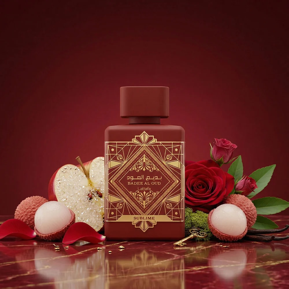 Bade’e Al Oud Sublime by Lattafa Perfumes is a Woody Aromatic fragrance for women and men. This is a new fragrance. Bade’e Al Oud Sublime was launched in 2023. Top notes are Apple, Litchi and Rose; middle notes are Plum and Jasmine; base notes are Vanilla, Moss and Patchouli.